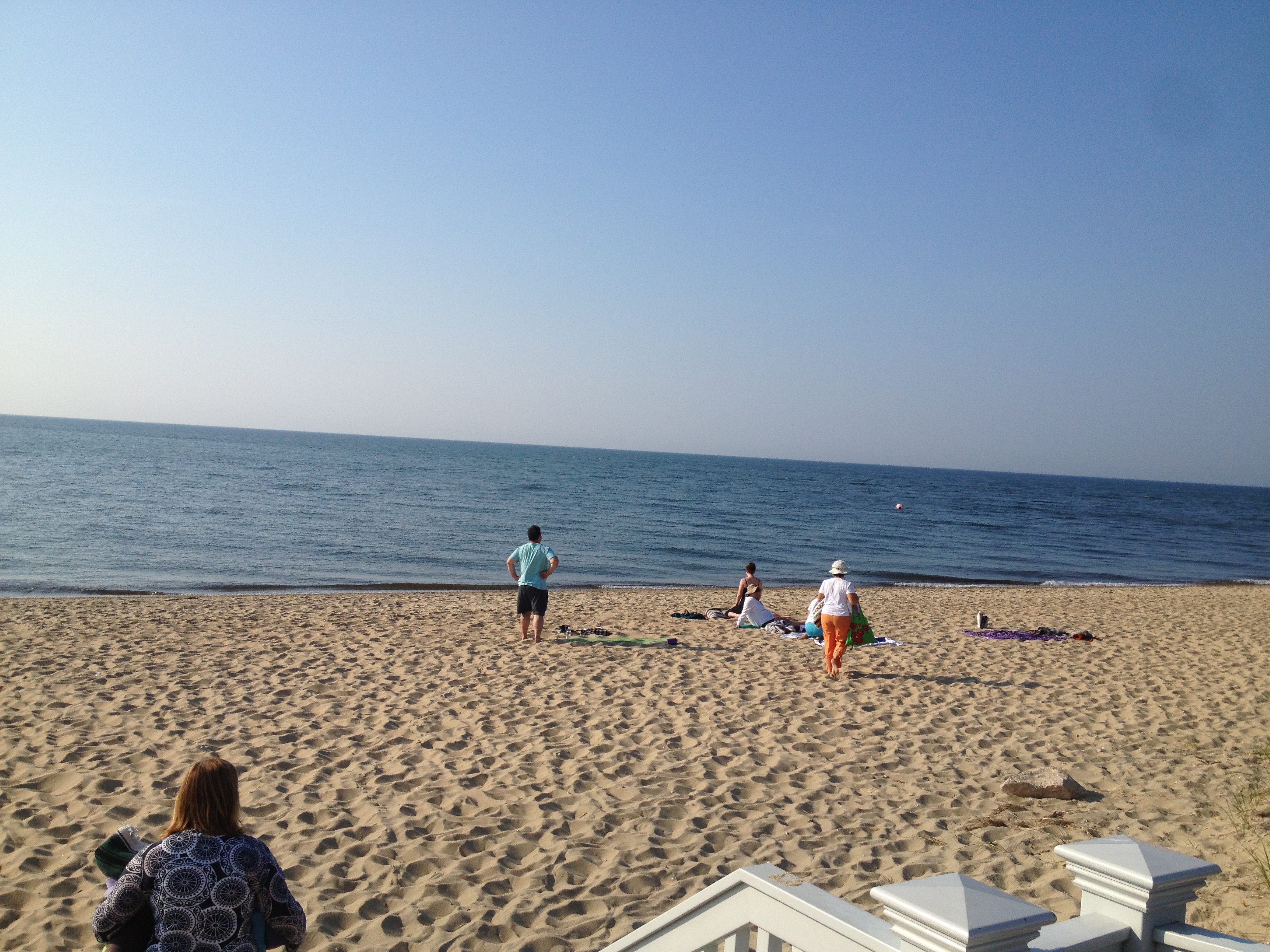 Mary, however, let out a cheer when she heard we had chosen a more gentle form of practice. (She’s biked across Martha’s Vineyard, windsurfed on Cape Cod, and once learned how to snowboard on a whim, but for some reason she feels her yoga skills are lacking.) We set up our towels, found a comfortable position, and waited for class to start.