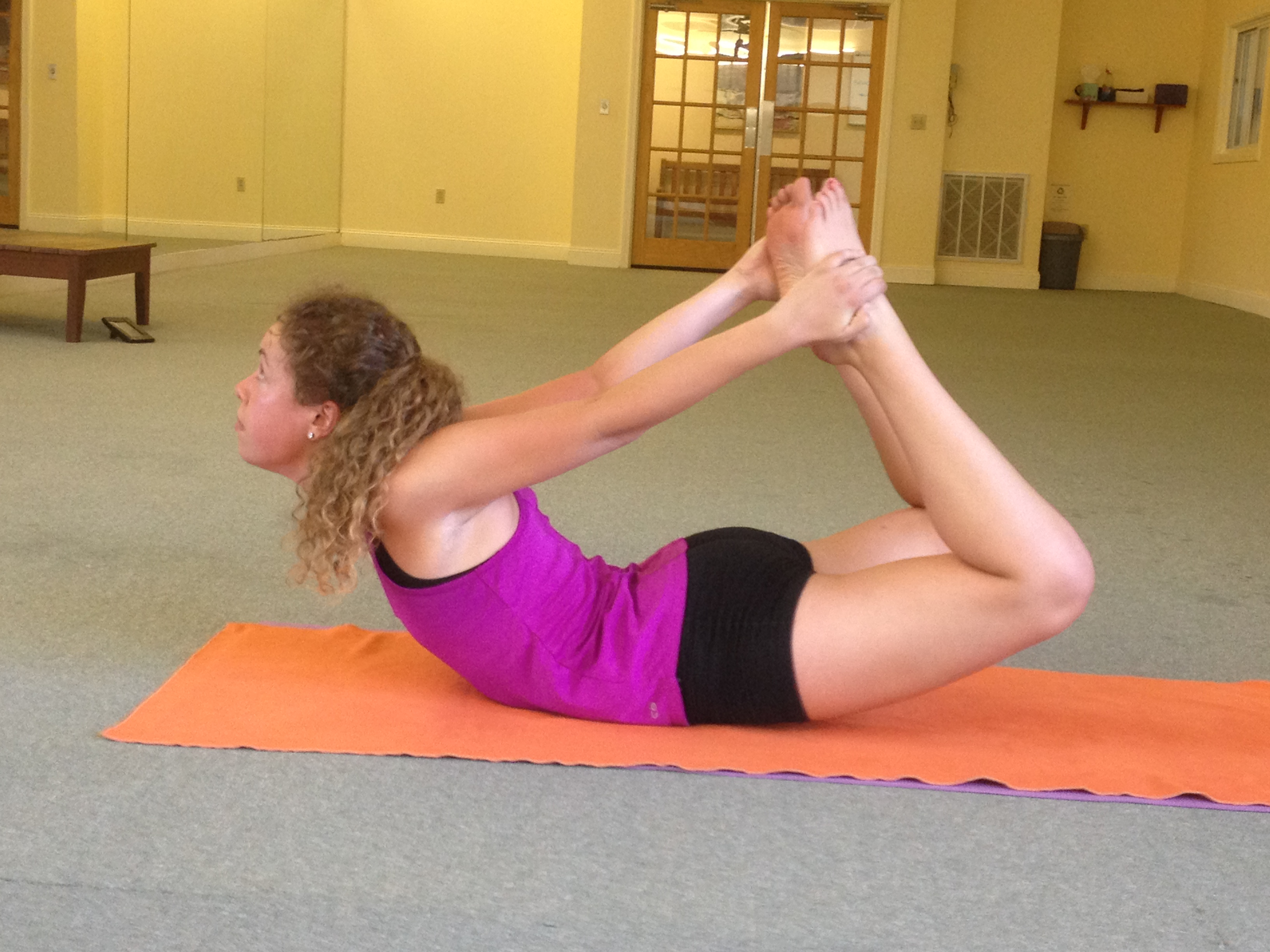 Floor Bow Pose: “Your butt should be a pillow for your head.” Gettin’ close.