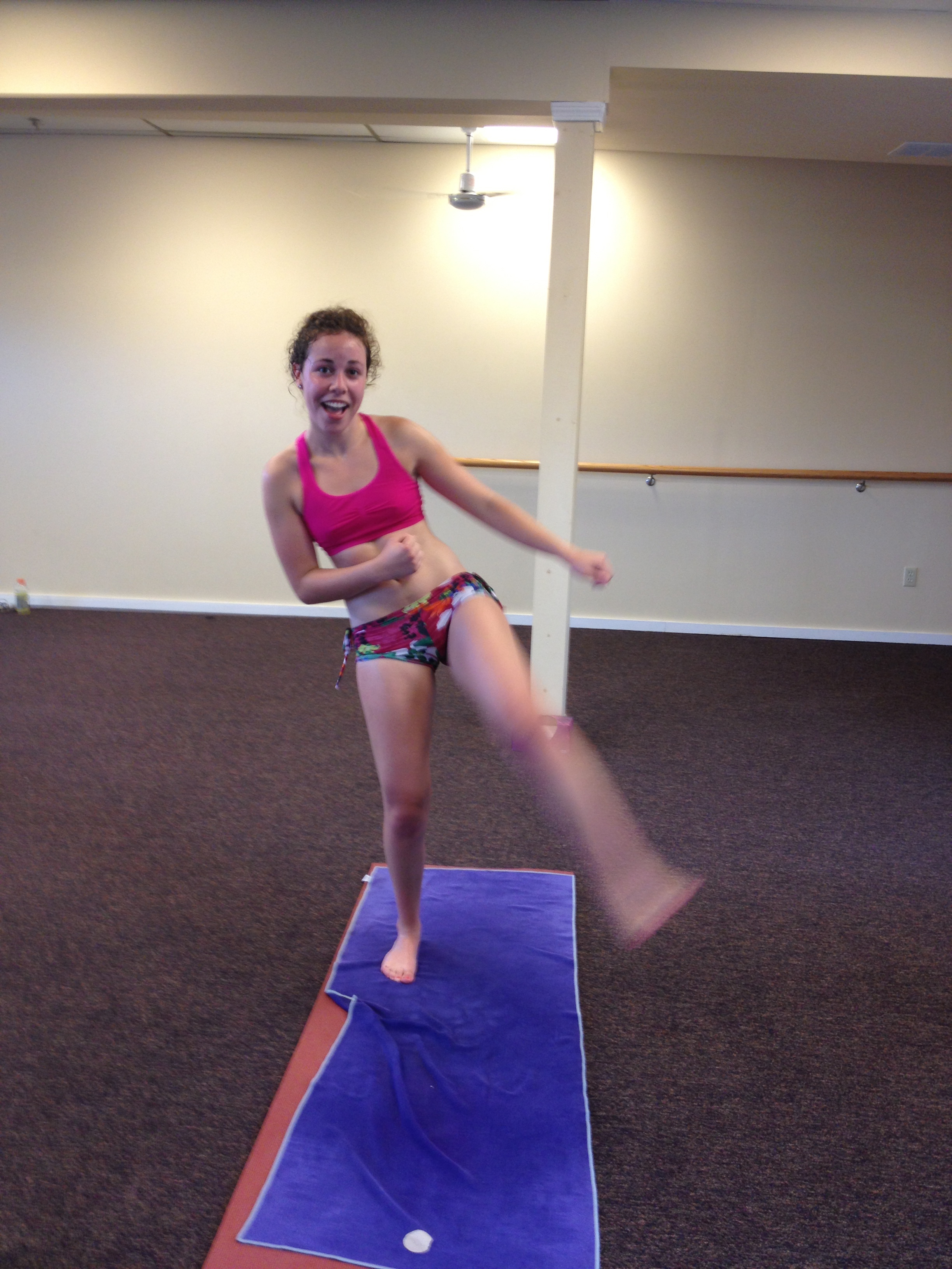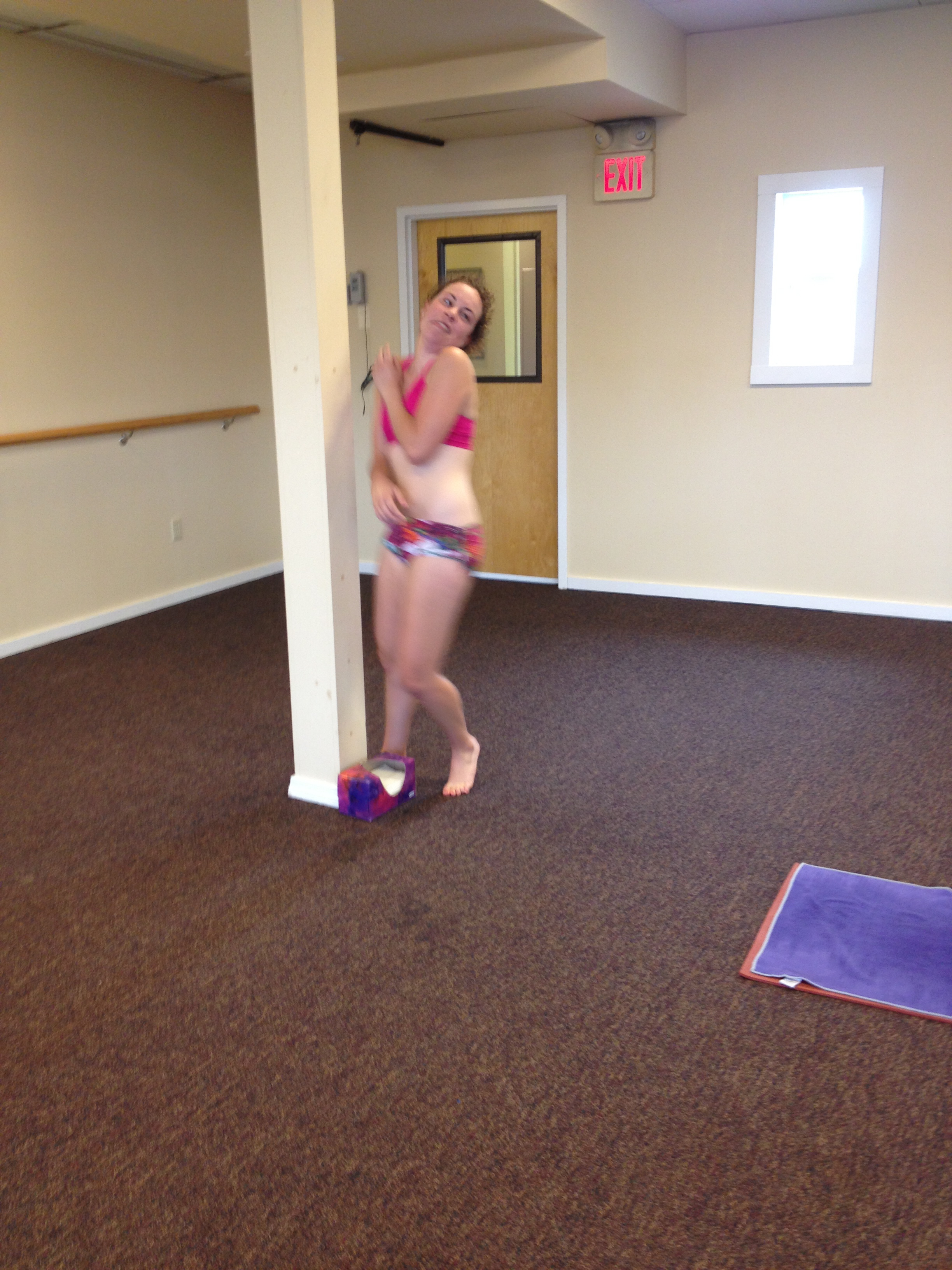 For starters, I had procrastinated doing my laundry (which, with the pile of sweaty clothes I accumulate on a daily basis, requires doing every three days or so) and was forced to delve into my sister’s closet to find a pair of spandex shorts. The shorts that I grabbed were just a smidgen too small and created a most unbecoming layer of belly fat overhang that I was forced to stare at for the entirety of the 90 minute practice. So confidence wasn’t at an all-time high.